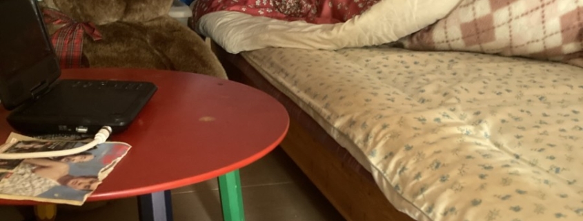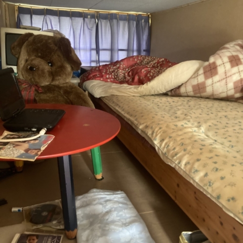 3畳ほどのロフトスペースでしたが、テレビやベッドなどがあり、