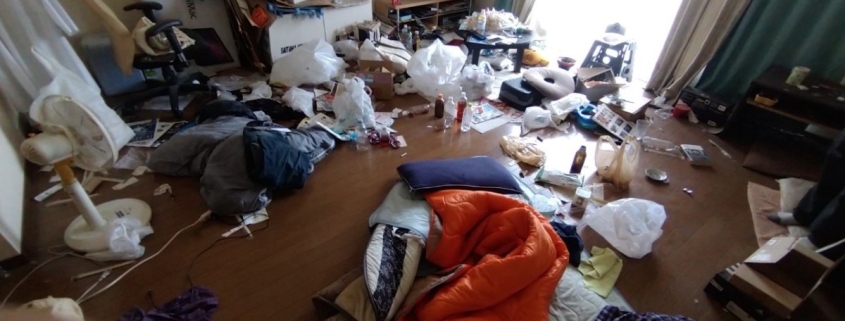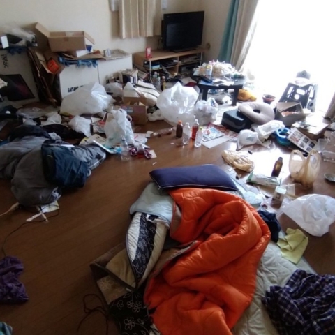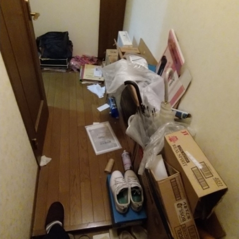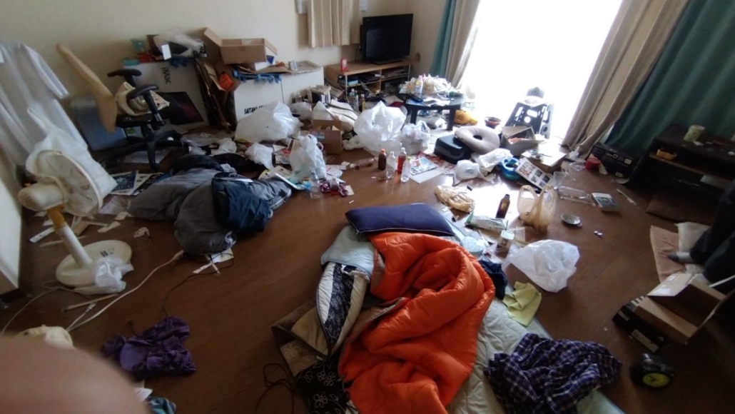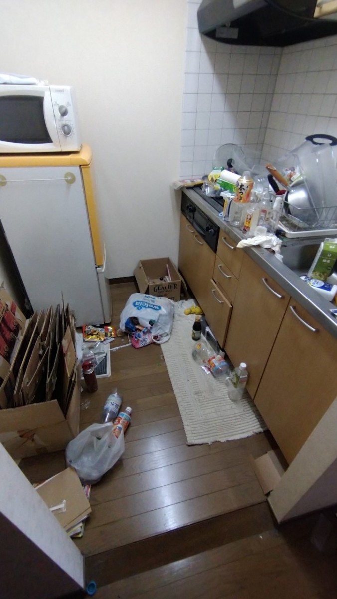 お部屋にはだいぶ荷物があり、ゴミが相当数ありました。例えるならば”プチゴミ屋敷”と言った所でしょうか?