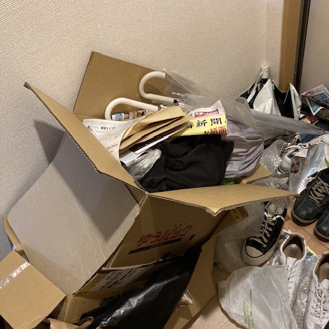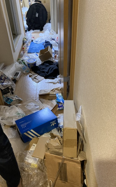 部屋は2つの洋間がありましたが、1部屋はほぼ段ボールやペットボトルが積み重なり、場所によっては腰の高さ位まで埋もれている状態でした。