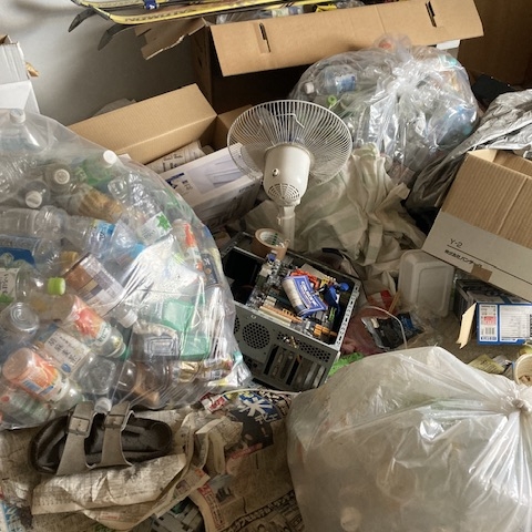また、各部屋は膝の高さ位までゴミが積みあがっていた為、丁寧に仕分けをしたうえで、クリーンセンターにゴミを搬入しました。