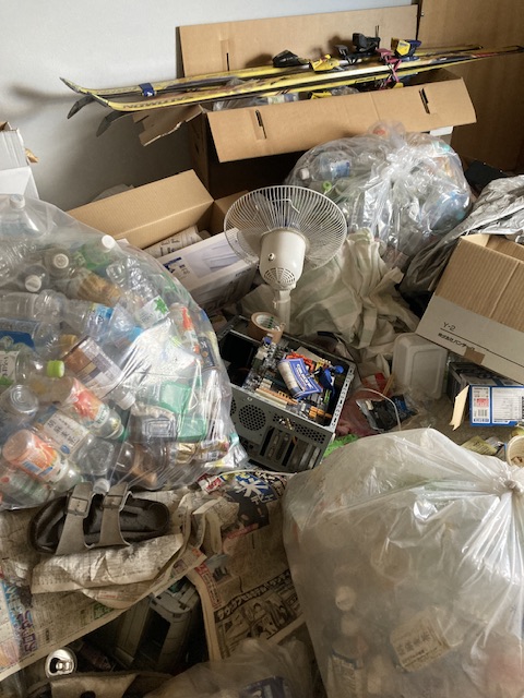 アパート室内の片付け作業を進める中で、飲みかけのペットボトルなどが数多くあり、液体を抜いてラベルを剥が手間などが発生し時間がかなりかかっております。