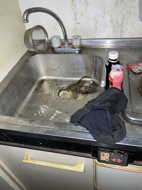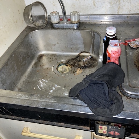 作業前と作業後では、お部屋の印象が大きく変わりました。床が見えるようになっただけでなく、水回りの衛生状態も改善され、退去後の原状回復としても十分な状態となりました。
