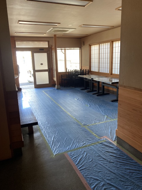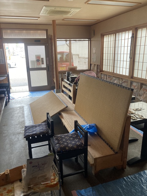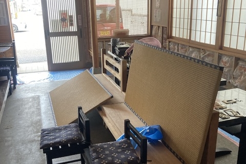 片付け前は畳や什器が混在し、営業時のままの状態だった店内。