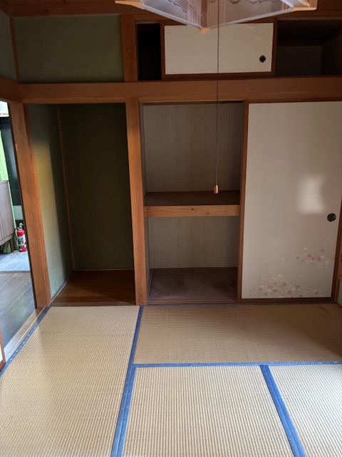 和室の押し入れには長年使用された家財が多く、日用品・衣類・家財が多く残っていました。