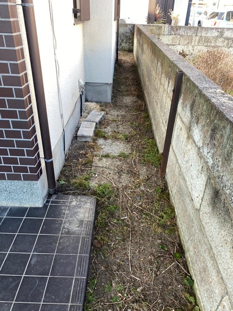 家の脇はスペースが狭く、機械が入れない状態