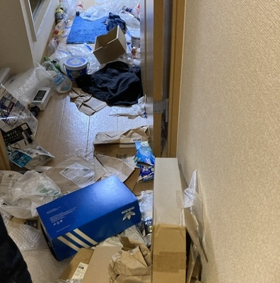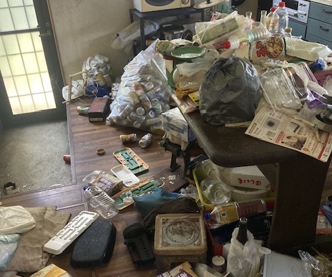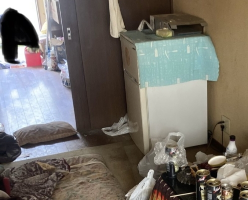 部屋全体にゴミが散乱しており、いわゆるゴミ屋敷状態になっていて「自分一人ではどうしようもできない」との事でご相談頂きました。